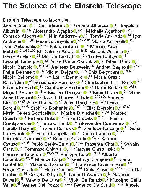 In dit 880 pagina's tellende wetenschappelijke document beschrijven niet minder dan 488 wetenschappers welke onderzoeksresultaten ze willen bereiken met de Einsteintelescoop. Het document geeft ook een objectief overzicht van welke resultaten verwacht worden van een driehoek en een 2L configuratie van de ET.